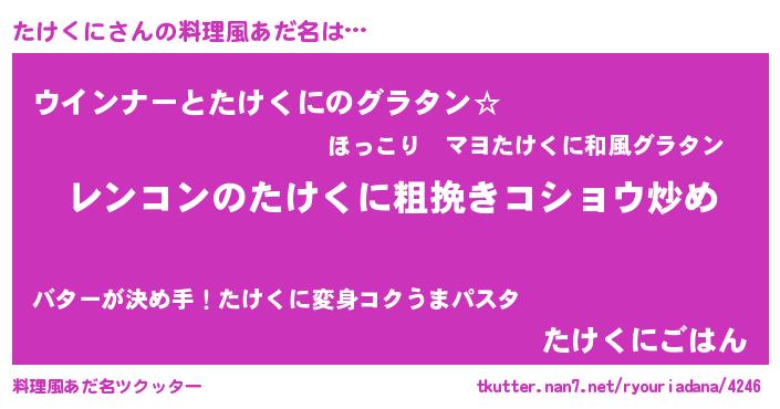 | 意味不明あだ名 | 『自称たけくに』『たけくにフォーエバー』 |
