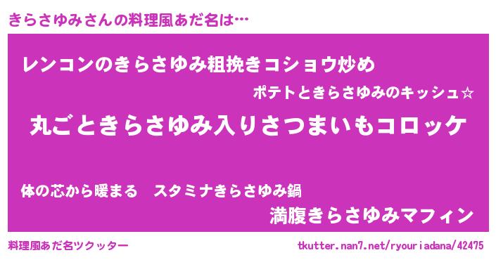 | 男性向けラノベタイトル風あだ名 | 『この素晴らしい世界にきらさゆみを!』 |