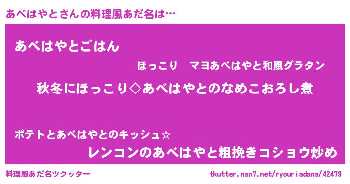 | 男性向けラノベタイトル風あだ名 | 『あべはやとに滅ぼされるだけの簡単なお仕事です』 |