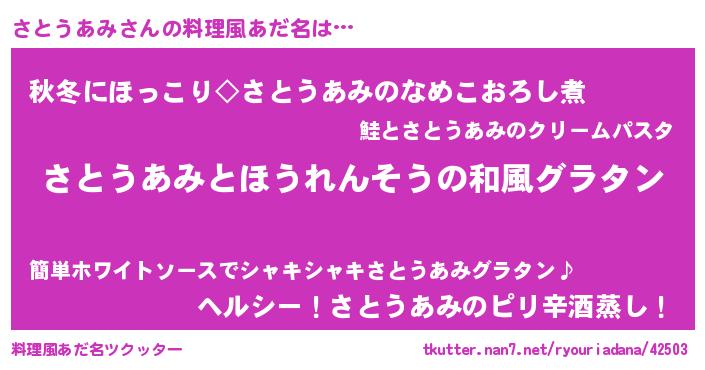 | 肩書あだ名 | 『さとうあみ上級大将』『さとうあみ総統』 |