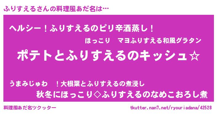| 女子向けラノベタイトル風あだ名 | 『ふりすえるの卵を拾いまして』 |