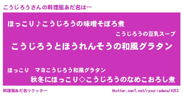 | 女子向けラノベタイトル風あだ名 | 『こうじろうの玉の輿計画!』 |