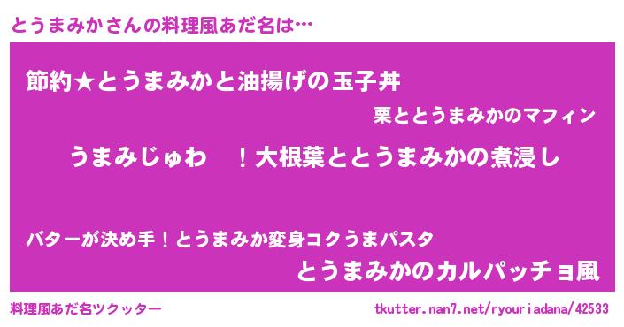 | 恥ずかしいあだ名 | 『とうっちょ』『プリティーとうまみか』 |