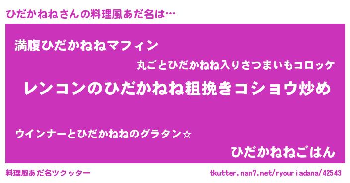 | ヘコむあだ名 | 『ひだかねね(遠い目)』『牛乳』 |