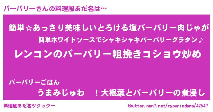 | 女子向けラノベタイトル風あだ名 | 『バーバリーアンティーク』 |