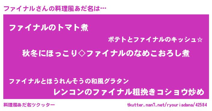 | 男性向けラノベタイトル風あだ名 | 『ファイナルに滅ぼされるだけの簡単なお仕事です』 |