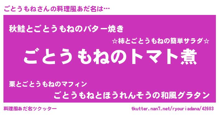 | 女子向けラノベタイトル風あだ名 | 『ごとうもね夫妻のなれそめ』 |
