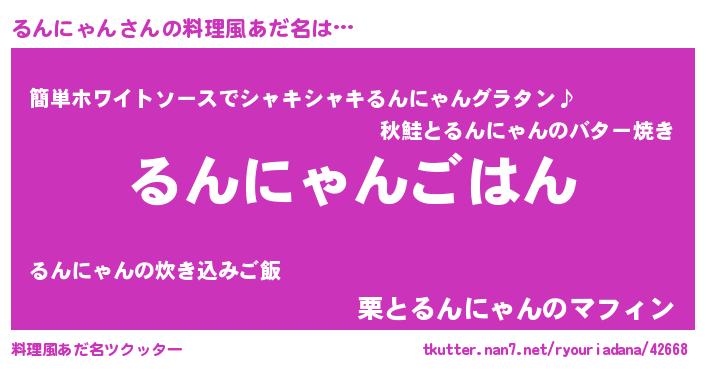 | 男性向けラノベタイトル風あだ名 | 『ルンニャンスレイヤー』 |