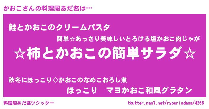 | ヘコむあだ名 | 『かおこ(笑)』『酢こんぶ』『かおお』 |