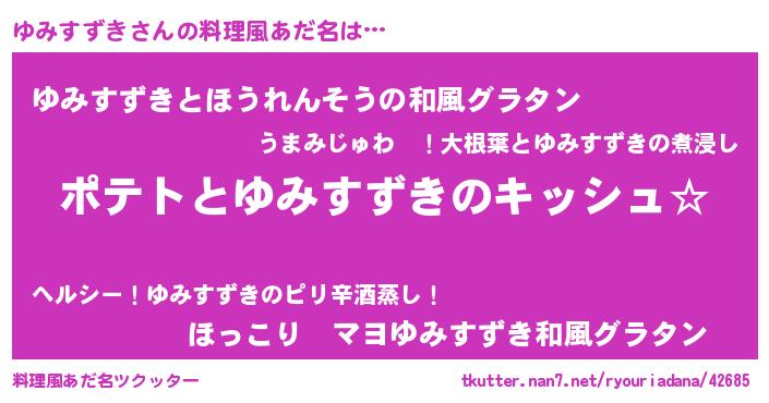 | ポケモン風あだ名 | 『ヒユミスズキ』『ユミキング』 |