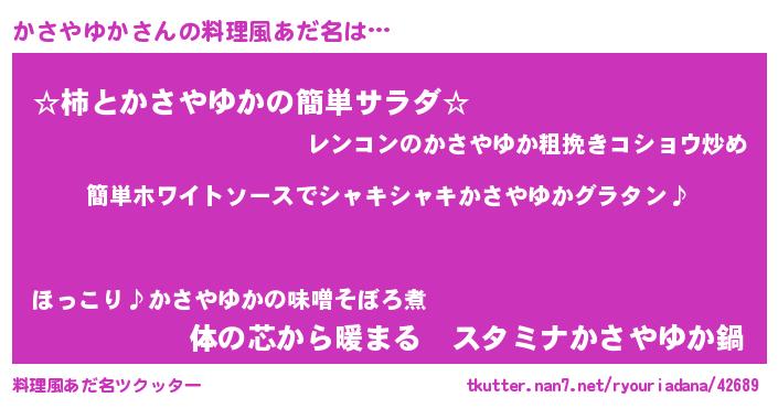 | 胡散臭い通販商品みたいなあだ名 | 『全米が絶賛したサプリメント…その名も「かさやゆか」』 |