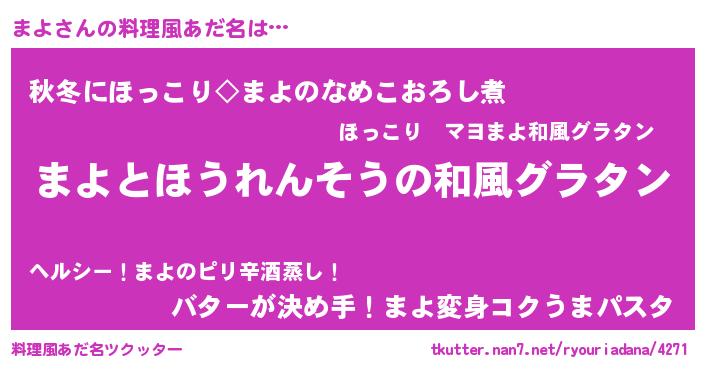 | ヒーロー風カッコイイあだ名 | 『慈愛の使者まよ』『仮面マヨダー』 |