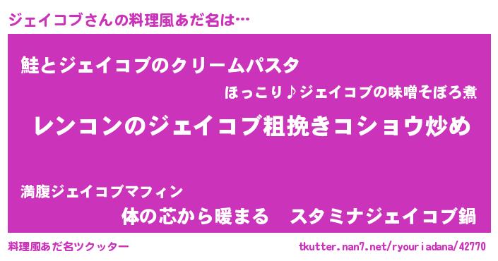 | 胡散臭い通販商品みたいなあだ名 | 『テレビで話題の高麗人参…その名も「ジェイコブ」』 |