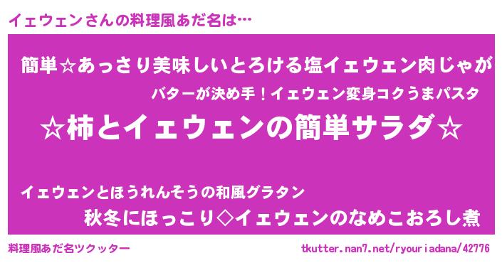 | 男性向けラノベタイトル風あだ名 | 『緋弾のイェウェン』 |