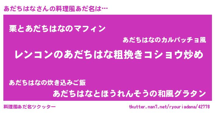 | 意味不明あだ名 | 『自称あだちはな』『ペロリンあだちはな』 |