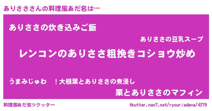 | 意味不明あだ名 | 『自称ありささ』『ありささフォーエバー』 |