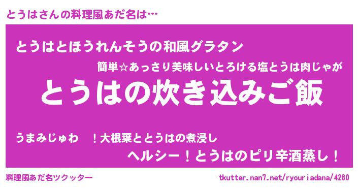 | ヘコむあだ名 | 『とうは(遠い目)』『なまこ酢』 |