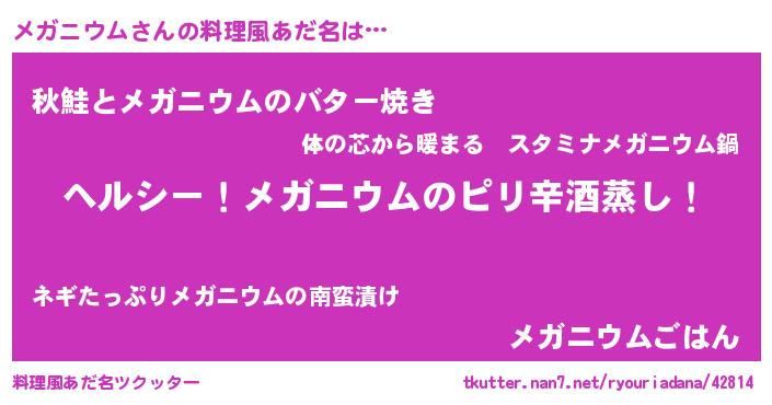 | 意味不明あだ名 | 『自称メガニウム』『永久保存メガニウム』 |
