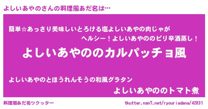 | ヒーロー風カッコイイあだ名 | 『仮面ヨシダー』『ネオヨシイアヤノ』 |