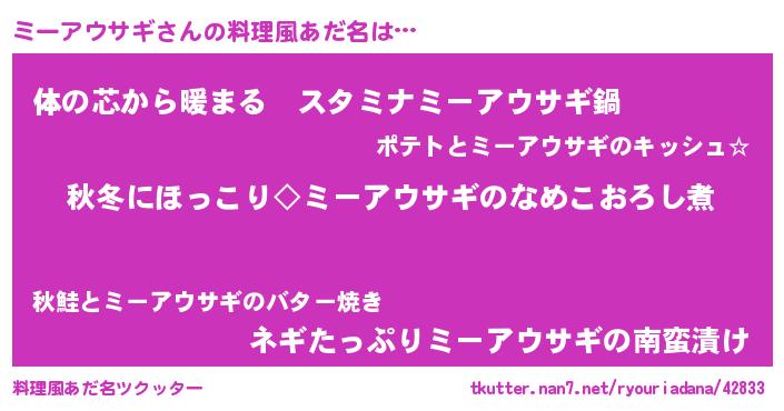 | 意味不明あだ名 | 『ミーアウサギフォーエバー』 |
