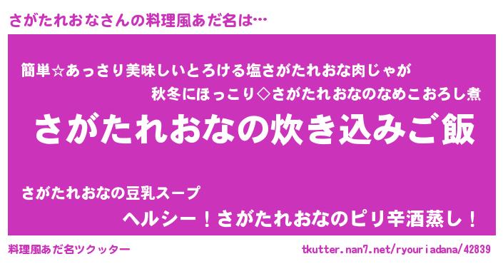 | ヘコむあだ名 | 『さがたれおな(苦笑)』『さが太郎』 |