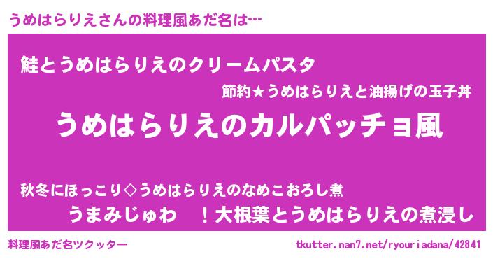 | 意味不明あだ名 | 『住所不定無職うめはらりえ(3歳)』 |