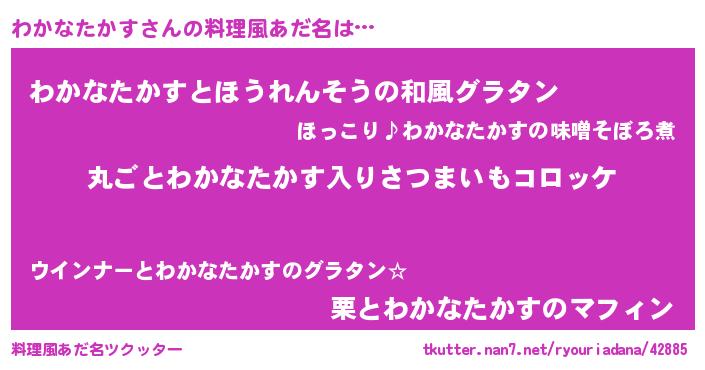 | ヒーロー風カッコイイあだ名 | 『仮面ワカダー』『スーパーワカナタカス』 |
