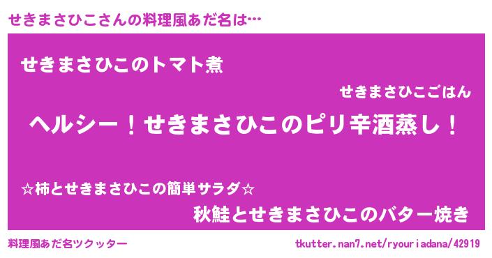 | 男性向けラノベタイトル風あだ名 | 『Re:せきまさひこから始める異世界生活』 |