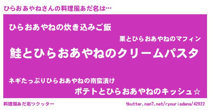 | 意味不明あだ名 | 『眠気覚ましガムひらおあやね味』 |