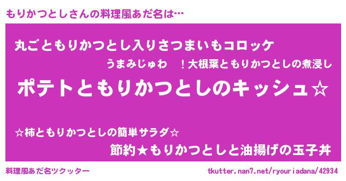 | 男性向けラノベタイトル風あだ名 | 『もりかつとしの嫁は女の子じゃないと思った?』 |
