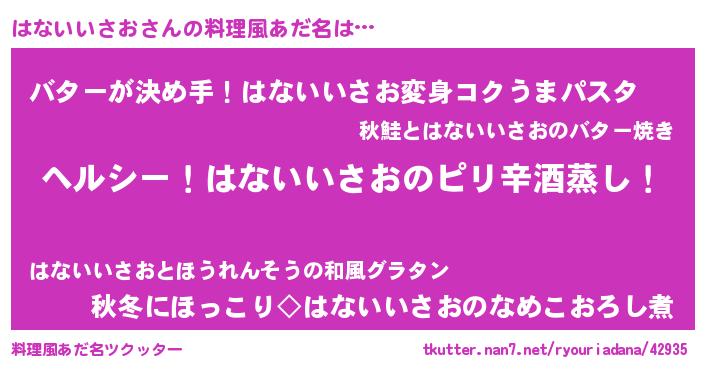 | 男性向けラノベタイトル風あだ名 | 『Re:はないいさおから始める異世界生活』 |