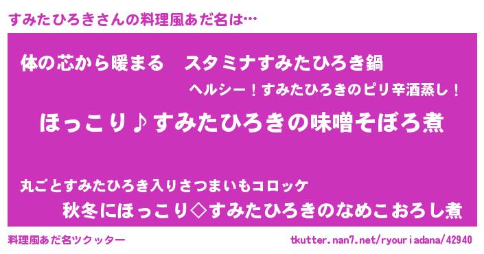 | 胡散臭い通販商品みたいなあだ名 | 『必ず成功する霊験あらたかなお札…その名も「すみたひろき」』 |