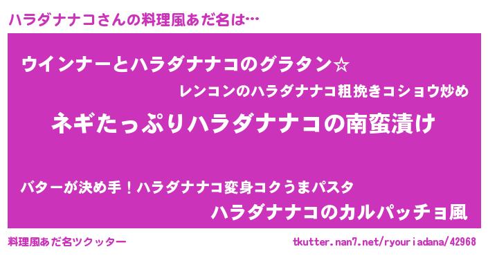 | ヒーロー風カッコイイあだ名 | 『スーパーハラダナナコ』『仮面ハラダー』 |