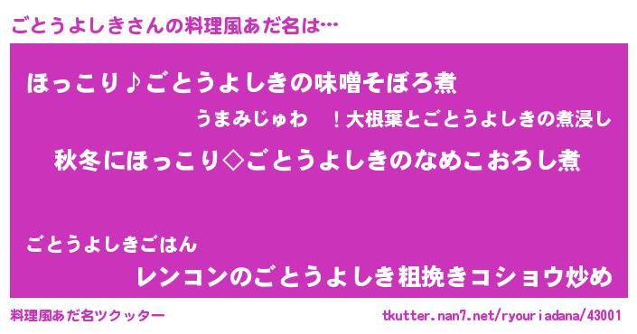 | 男性向けラノベタイトル風あだ名 | 『ごとうよしきに滅ぼされるだけの簡単なお仕事です』 |