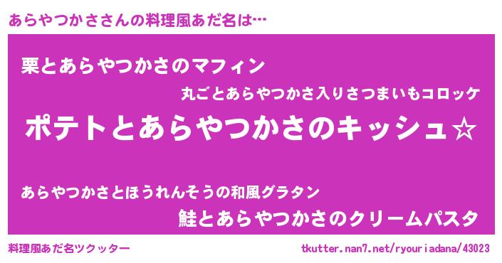 | 意味不明あだ名 | 『とにかく怪しいあらやつかさ』 |
