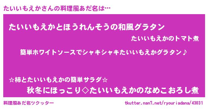 | ヘコむあだ名 | 『たいっ子』『たいいもえか(爆)』 |