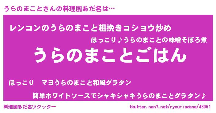 | 肩書あだ名 | 『うらのまこと上級大将』 |