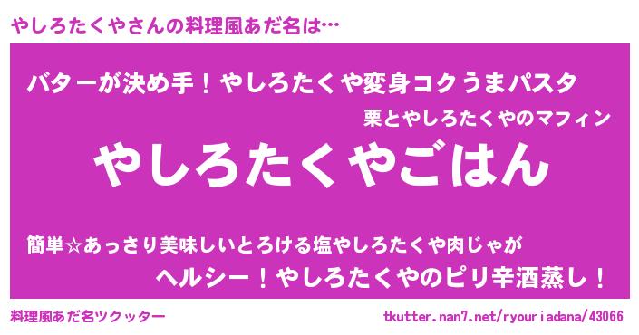 | ヘコむあだ名 | 『やしろたくや(遠い目)』『やしもー』 |