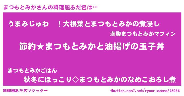 | ヘコむあだ名 | 『まつっふぃ~』『酢こんぶ』 |
