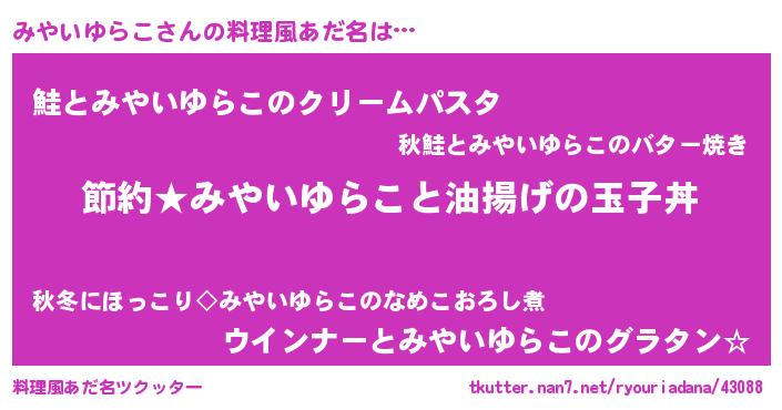 | ヒーロー風カッコイイあだ名 | 『スーパーミヤイユラコ』『天弓騎士ミヤ』 |