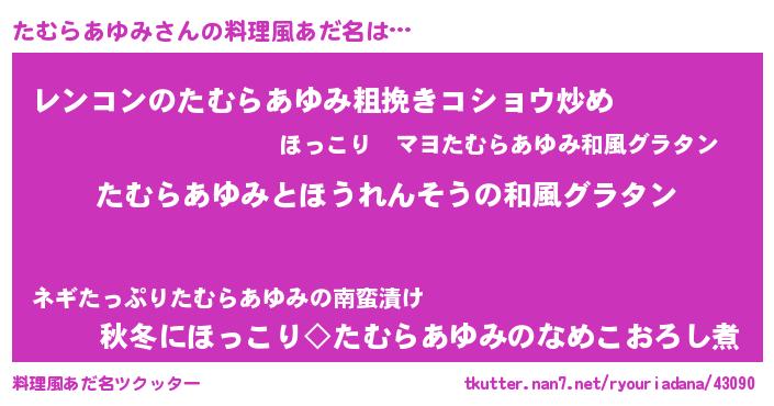 | 意味不明あだ名 | 『もやし科たむらあゆみ属』 |