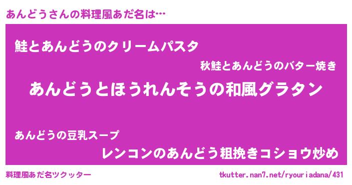 | 意味不明あだ名 | 『ヨモギ科あんどう属』『自称あんどう』 |