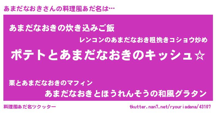 | 女子向けラノベタイトル風あだ名 | 『あまだなおきの卵を拾いまして』 |