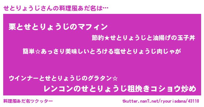 | ヘコむあだ名 | 『せとりょうじ(笑)』『せとっふぃ~』 |