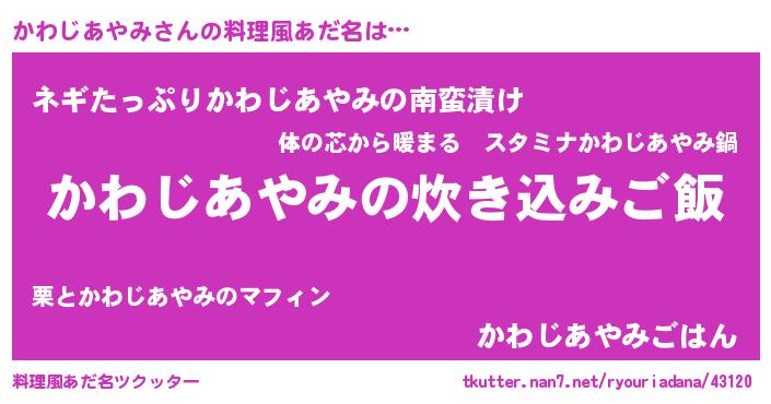 | 肩書あだ名 | 『かわじあやみ船長』『かわじあやみ大佐』 |