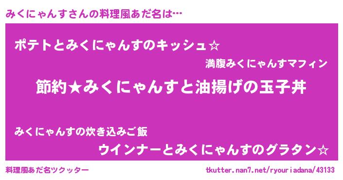 | ヒーロー風カッコイイあだ名 | 『スーパーミクニャンス』『魔戒騎士ミク』 |