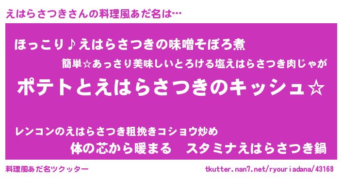 | 男性向けラノベタイトル風あだ名 | 『えはらさつきの嫁は女の子じゃないと思った?』 |