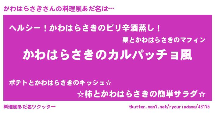 | ヒーロー風カッコイイあだ名 | 『仮面カワダー』『究極戦士カワハラサキ』 |