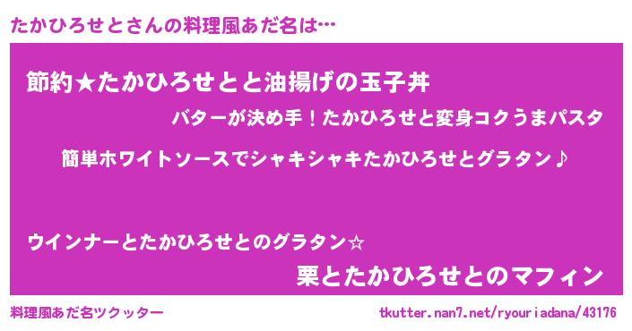 | ポケモン風あだ名 | 『ヒタカヒロセト』『タカチュウ』 |