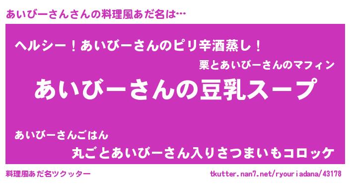 | 意味不明あだ名 | 『とにかく怪しいあいびーさん』 |